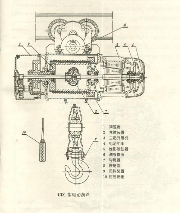 CD1型電動葫蘆就是通過以上步驟進行運行的,每個部件相互協(xié)作,完成一次又一次完整的重物起吊工作。