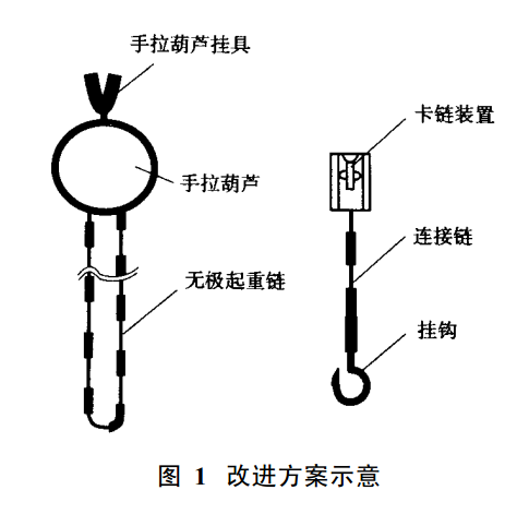 這種情況下我們可以將手里葫蘆的有極起重鏈上不帶掛鉤,無極起重鏈可委托鏈條生產(chǎn)廠家加工。將單獨的掛鉤用一小段鏈條與卡鏈裝置相連接,使用時可根據(jù)被提升或被拉拔物體的具體位置,將卡鏈裝置卡掛在無極起重鏈的合適位置上,就可以直接起吊或拉拔,這樣可以省去回鏈、收鏈工作。