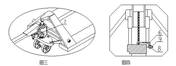 6 、如圖三扳動手柄3,拔出銷子7,并將銷子7妥善保存,以備下次更換手柄時使用。