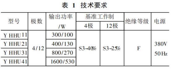 該產品在電動環(huán)鏈葫蘆中為裝入式封閉結構,共有四個規(guī)格組成的一個系列,根據電動環(huán)鏈葫蘆工作特性,用戶提供技術要求,如表1所示: