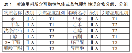 《涂裝作業(yè)安全規(guī)程 涂漆工藝安全及其通風凈化》(GB 6514-2008)明確了封閉或半封閉涂漆工藝裝備內部為1區(qū)爆炸性危險區(qū)域,其開敞面以外,水平距離3m,垂直距離1m以內的空間區(qū)域劃為2區(qū)爆炸性危險區(qū)域。