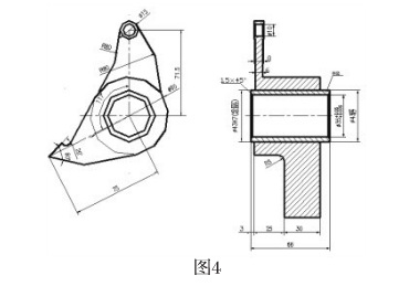 棘爪組件主要包括棘爪板、銷軸、軸承。棘爪組件的棘爪板形狀如圖4所示,其中心裝有銷軸,安裝在葫蘆外殼上,棘爪可以繞銷軸作一定角度的擺動(dòng),棘爪板上端有軸承,軸承與棘輪組件上的凸輪接觸。