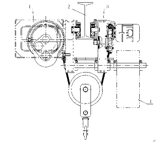 因為小車的墻板截面為框形結構,框形結構的墻板可承載載荷大,框形結構不易變形,調整螺栓所受的力也相應變小,可采用比傳統(tǒng)鋼絲繩電動葫蘆更小的調整螺栓,使整個低凈空式鋼絲繩電動葫蘆自重更輕,材料成本也得到降低。
