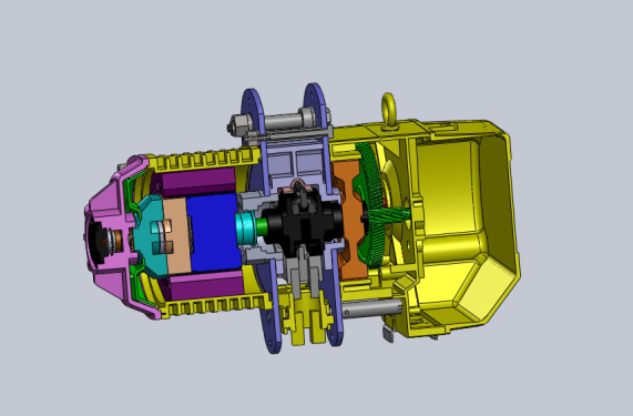 (3)電機裝在卷筒里面的電動葫蘆,其優(yōu)點為長度尺寸小,結(jié)構(gòu)緊湊。其主要缺點為電機散熱條件差,分組性差,檢查、安裝、維護電機不便,?供電裝置復(fù)雜。
