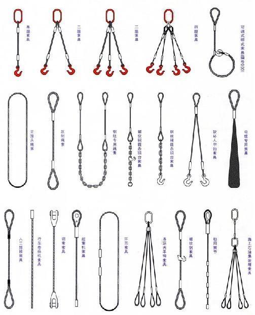 吊索具是一種配合電動葫蘆使用的連接件,一般可以分為金屬吊索具和合成纖維吊索具。金屬吊索具主要有鋼絲繩索具,吊裝帶索具,鏈條索具,卸扣,吊鉤,吊鉗等。合成纖維索具主要有繩類和帶類兩種。