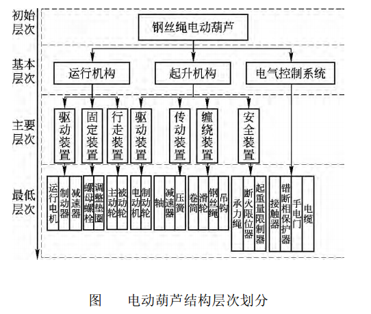 CD(MD)型電動葫蘆是鋼絲繩電動葫蘆中主要的兩個(gè)類分,均采用錐形制動電機(jī)。他們的不同之處是MD型電動葫蘆多了一個(gè)聯(lián)軸器慢速驅(qū)動裝置。但是在結(jié)構(gòu)層次的劃分上他們都是相同的。