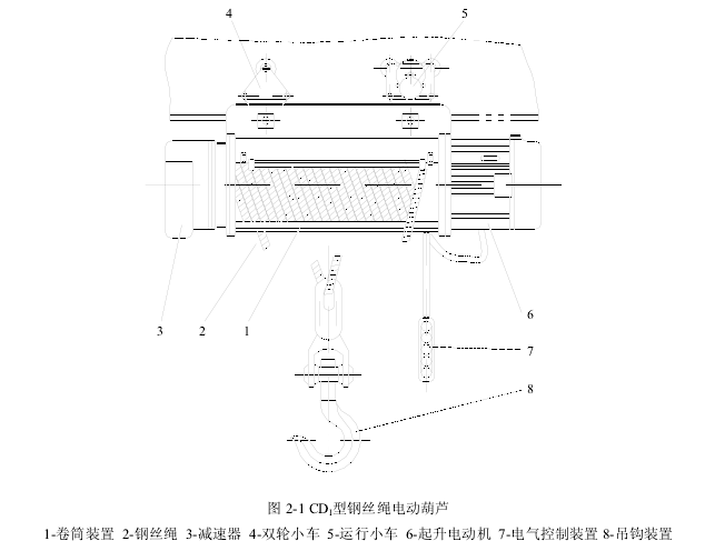 鋼絲繩電動(dòng)葫蘆自1963年來設(shè)計(jì)的第一代CD/MD型鋼絲繩電動(dòng)葫蘆,先后又進(jìn)行了多次改進(jìn)和設(shè)計(jì),制造出一代又一代的電動(dòng)葫蘆。但是所有電動(dòng)葫蘆的基本組成和工作形式是不變的。