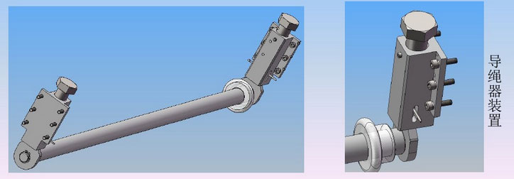 歐式鋼絲繩電動(dòng)葫蘆采用的是完全自主研發(fā)的免維護(hù)、柔性導(dǎo)繩器裝置,該裝置主要由導(dǎo)繩器支座、插頭、導(dǎo)桿、壓繩滾等組成,支座內(nèi)部裝有彈簧,大的優(yōu)點(diǎn)是壓繩滾與卷筒間的間隙為可調(diào)的,設(shè)計(jì)大的間隙為卷筒繩槽的高度,這樣即使出現(xiàn)跳繩的現(xiàn)象,只需打開(kāi)頂絲將鋼絲繩歸位就行,不會(huì)造成導(dǎo)繩器損壞。插頭上安裝有開(kāi)口銷,防止插頭從支座內(nèi)部滑落。