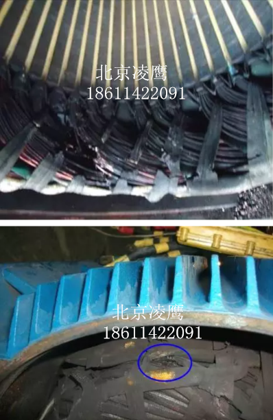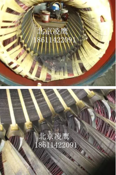 過載特征:繞組全部變黑色,端部扎帶變色并且變脆甚至斷裂。如下圖: