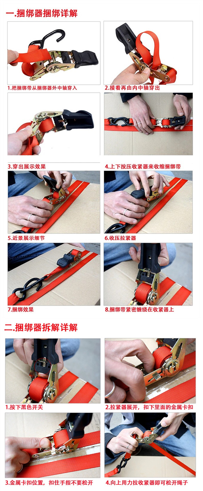 捆綁器屬于手動(dòng)捆綁工具,主要用于汽車運(yùn)輸貨物捆綁。捆綁器由各種不同規(guī)格的滌綸帶及金屬制品,如鉤,手拉器組成,具有操作靈活,省時(shí)省力,攜帶方便等特點(diǎn)。